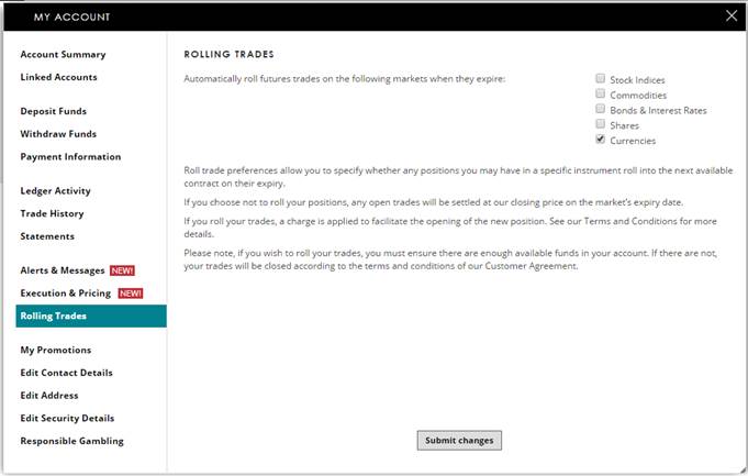 When you first open the account, as a default setting, all preferences are set for trades not to roll. If you wish for your trades to roll past their respective expiry dates it is essential that you have updated these preferences.