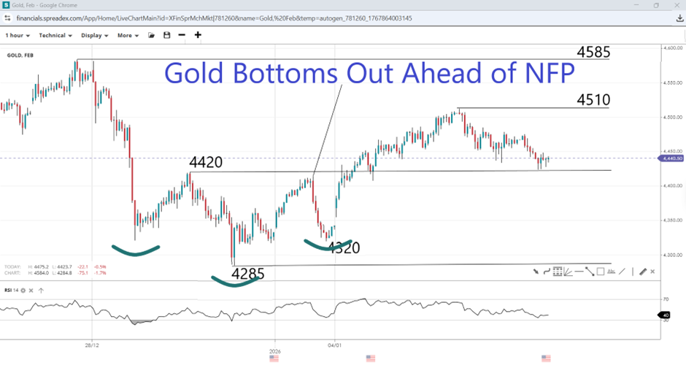 Ahead of the release of the jobs data, gold prices are attempting to reach a new record high amid safe-haven demand driven by geopolitical tensions. As the situation in Venezuela stabilises, traders now have Greenland to worry about, amid rising diplomatic tensions between the US and the EU. After two weeks without Fed speakers, traders are looking for commentary to provide insight into the balance of hawks and doves and how concerned FOMC officials are about the jobs market. Attention is also returning to the appointment of a new Fed Chair, which US President Donald Trump had teased for early January before headlines were occupied by Venezuela. All of that could affect the timing of the next rate cut, with upside for the yellow metal contingent on traders becoming more convinced that the Fed will ease in March.