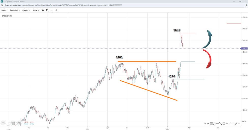 While some European defence stocks have seen significant gains, some defence plays may still be of interest to some traders. The UK’s BAE Systems, in particular, is well-positioned to benefit from Britain's planned increase in defence spending, standing out as a potential beneficiary of Europe's pivot towards greater military self-reliance.