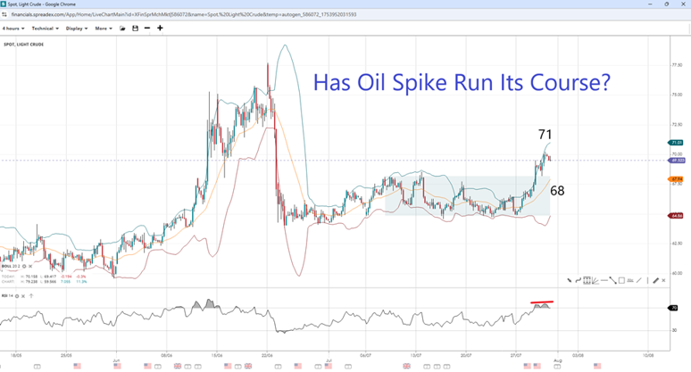 Other events that contributed to higher crude prices were the EIA report showing strong gasoline demand. Geopolitics interfered as well, after US President Donald Trump announced he was shortening the deadline for Russia to reach a peace agreement with Ukraine to 10-12 days. He threatened "secondary" sanctions on countries that bought Russian oil, such as China and India. The US also announced new sanctions targeting shipments of Iranian crude. In the other direction, the Fed's hawkish position following its decision not to cut rates raised demand concerns.