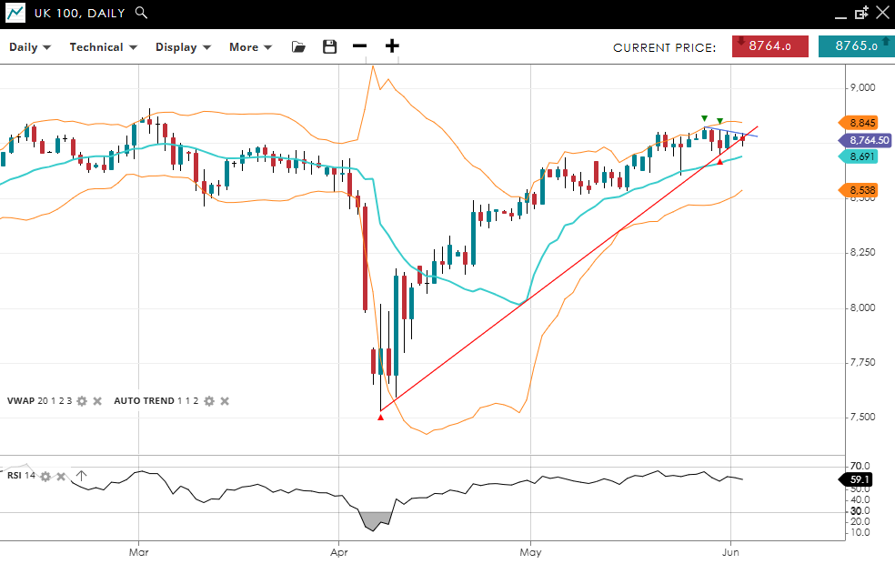 | UK 100 | Bullish | Impulsive | 8764 | 8691 | 8538 | 8845 | 59.1 |