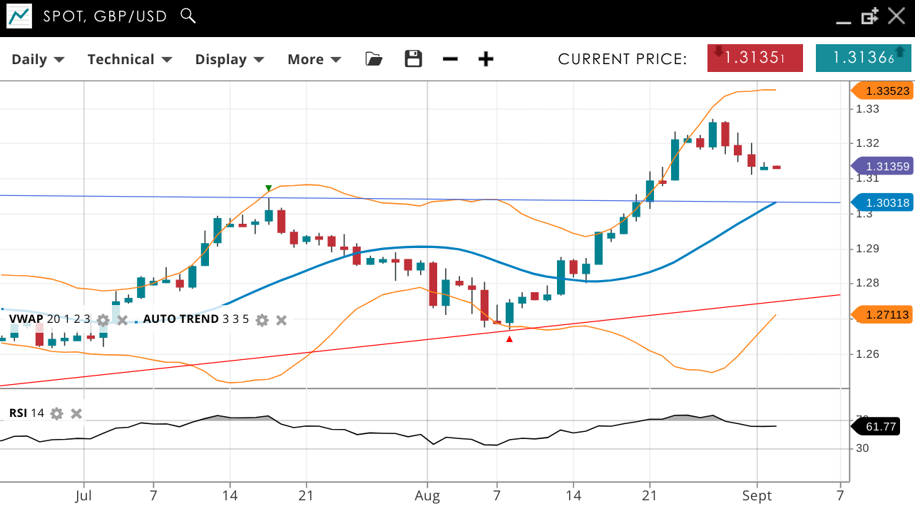 NOTE: These charts use the ‘Pro Trading Tools’ available on the SpreadEx trading platform. To use them, log in to your SpreadEx Financials Account and click ‘Technical’ from the menu on any chart.