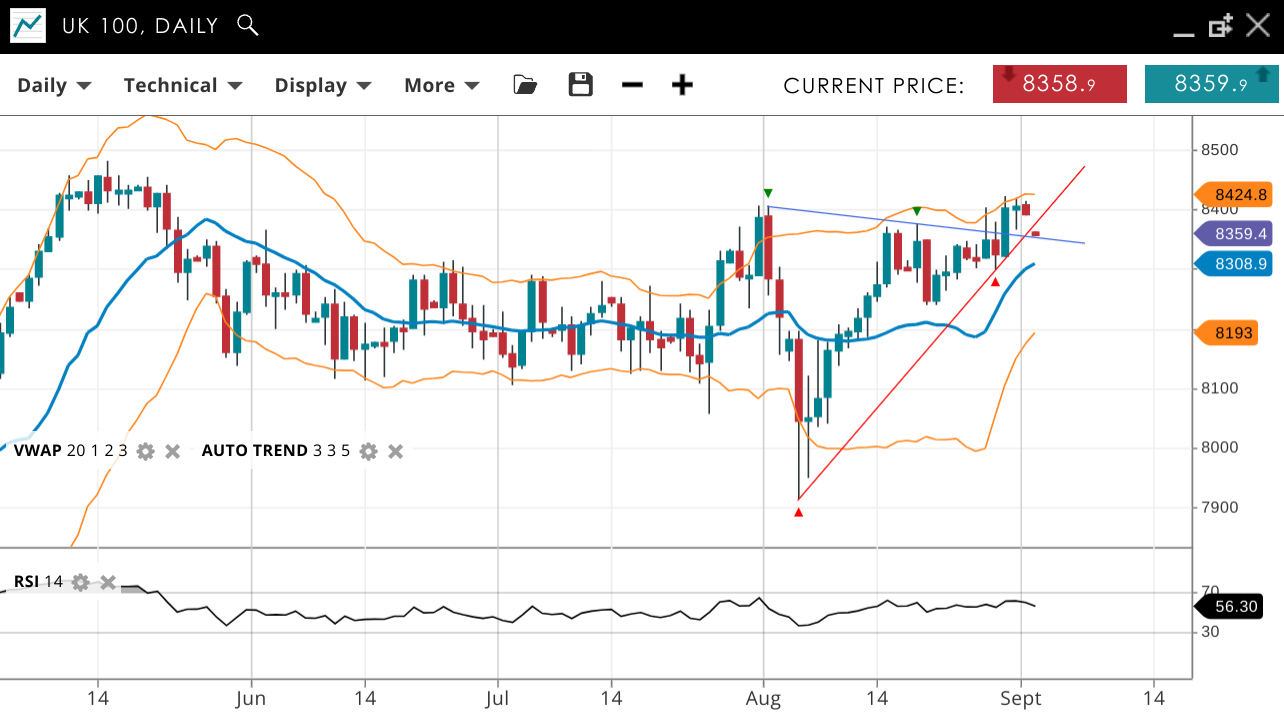 | UK 100 | Neutral | Consolidation | 8359 | 8308 | 8193 | 8424 | 56 |