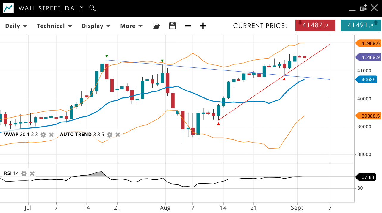 | Wall Street | Bullish | Impulsive | 41489 | 40689 | 39388 | 41989 | 67 |