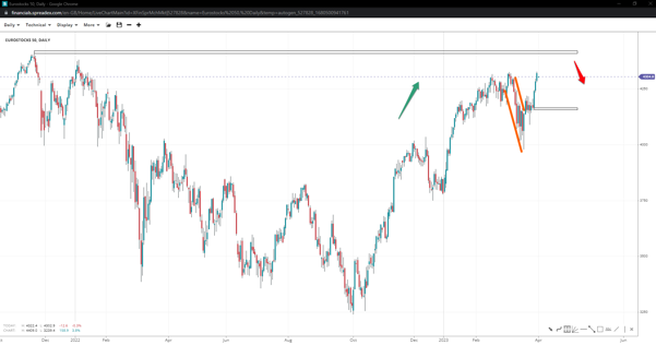 The European index left a flag on the rearview mirror and headed towards the Nov ‘21 peak of 4410. if prices get stuck at the local high, the chances of reversing back to 4k will increase, dependent upon the firmness of 4165.