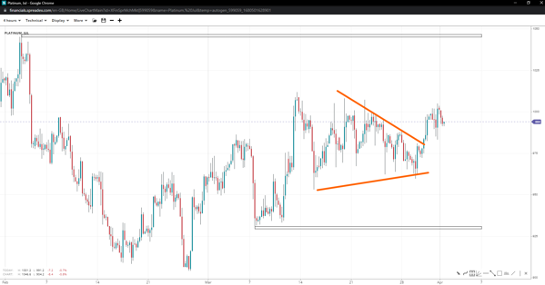 Platinum ended a triangle pattern at $960/oz, offering respite towards the measured-move high of $1035/oz. Bulls must reclaim $1010/oz in advance; otherwise, they risk letting prices repel to $960/oz, where probabilities of further declines to $930/oz would increase.