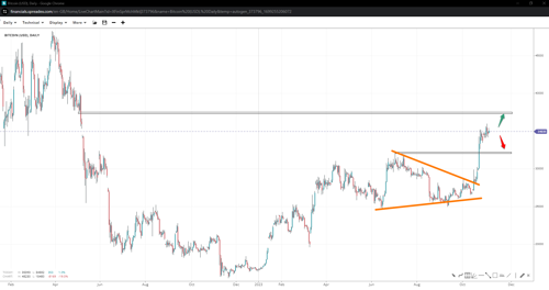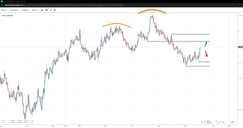 The Tech index has reclaimed the 15k handle but faces upper trendline resistance before confirming or invalidating the flag. If bulls can get past rejection peaks at 15350 and 15650, it would support the bullish thesis. Otherwise, losing the round support will expose support at 14850 and the swing low of 14555.