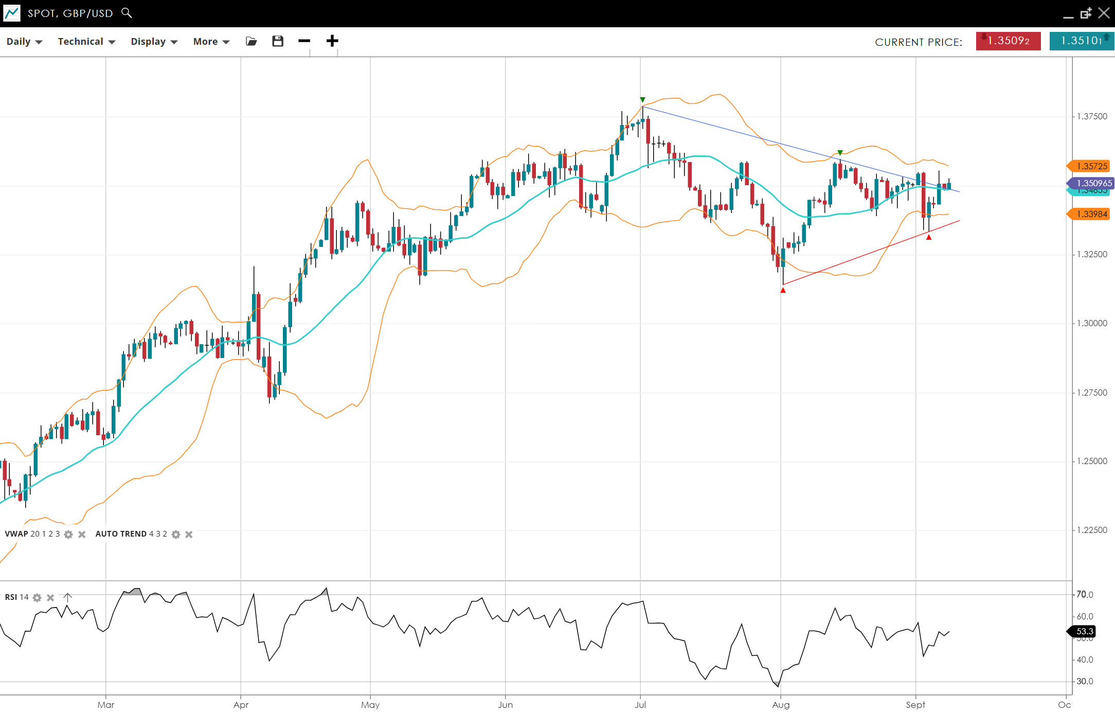 NOTE: These charts use the ‘Pro Trading Tools’ available on the SpreadEx trading platform. To use them, log in to your SpreadEx Financials Account and click ‘Technical’ from the menu on any chart.