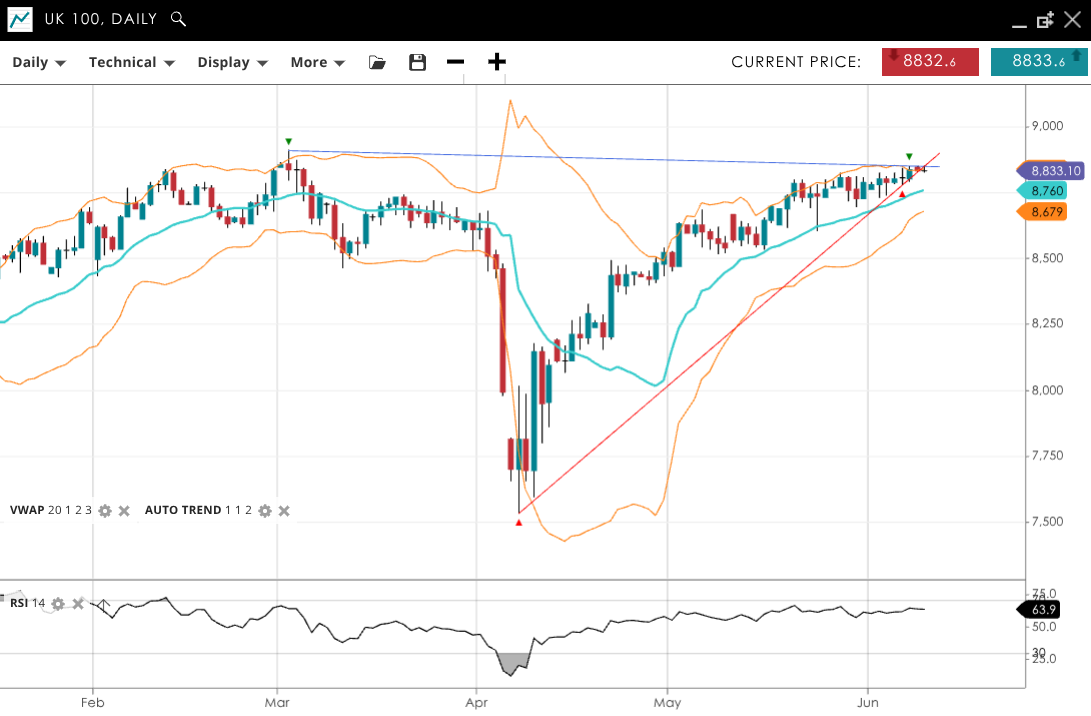 | UK 100 | Bullish | Impulsive | 8,833 | 8,760 | 8,679 | 8,850 | 63.9 |
