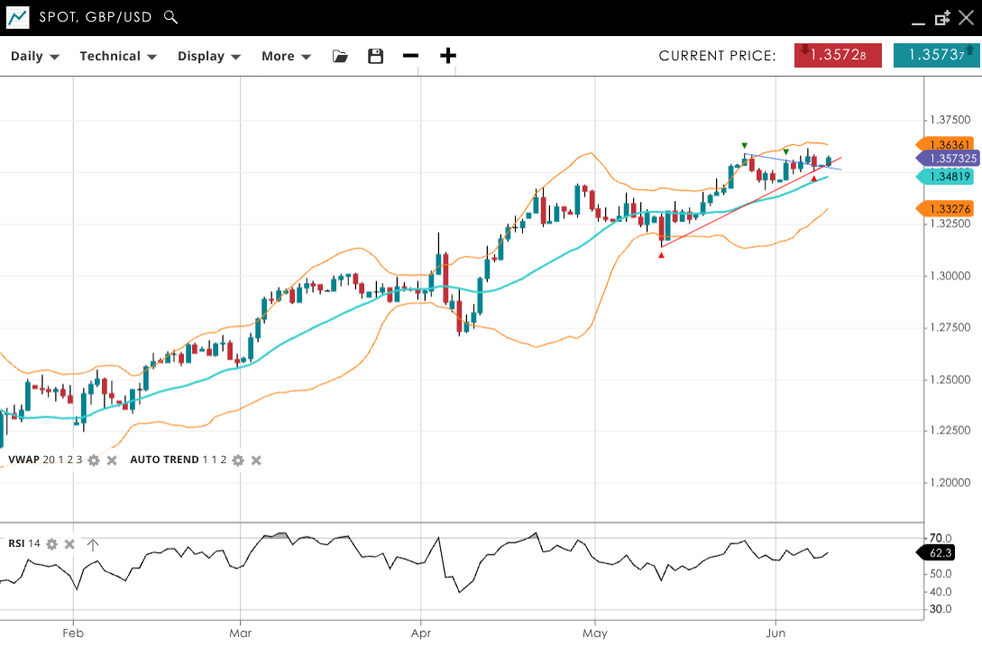 NOTE: These charts use the ‘Pro Trading Tools’ available on the SpreadEx trading platform. To use them, log in to your SpreadEx Financials Account and click ‘Technical’ from the menu on any chart.