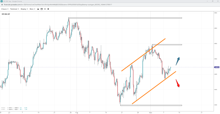 If the S&P 500 continues to trade within the ascending channel connecting the troughs of 4365 and 4435, bulls may target the peak at 4550. Losing the regional low could bring 4345 back into focus.