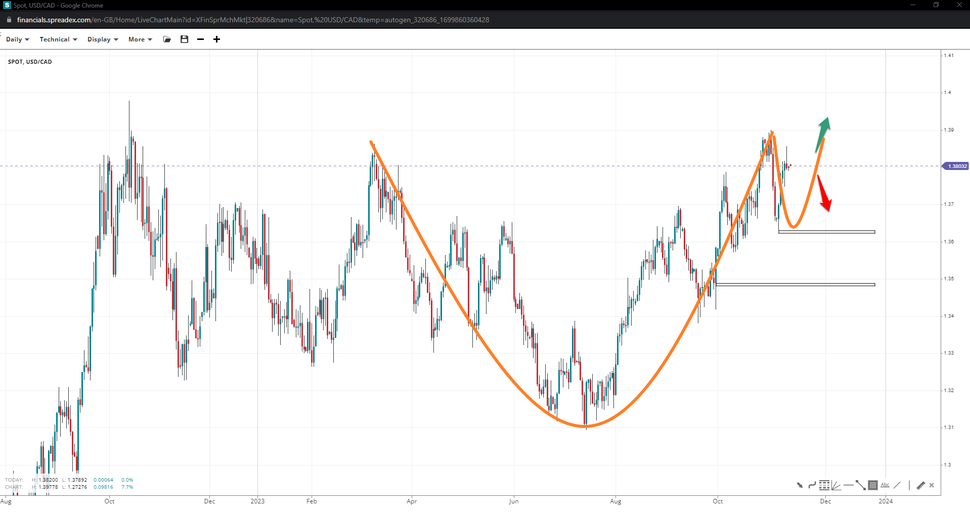 Loonie appears to be under short-term pressure after receiving rejection at 1.39, but the pattern resembles a cap-and-handle pending further upsides towards 1.40. At the same time, any upward leg would also reveal a potential wedge pattern, which would have a reversing effect on prices, breaking the swing support and opening up 1.3490.