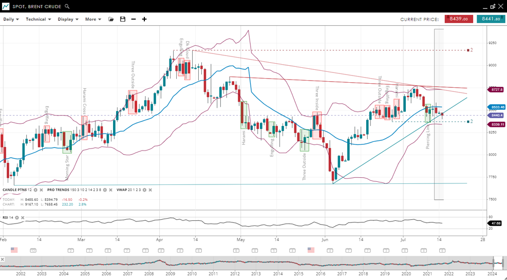 | Brent Crude | Bullish | Corrective | 84.40 | 85.33 | 83.39 | 87.27 | 47 |