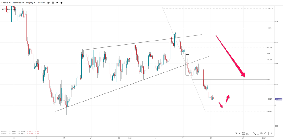 The bearish channel formation of GBP/USD successfully accelerated the trend after breaking outside the lower band. The market is likely to test the local low near 1.1760 and possibly slide lower towards 1.1700 before a short-term reversal could ensue. If bulls manage to hold the line, it could lead the pair towards the 1.20 mark, where we expect at least an initial rejection, if bulls successfully reenter the channel.