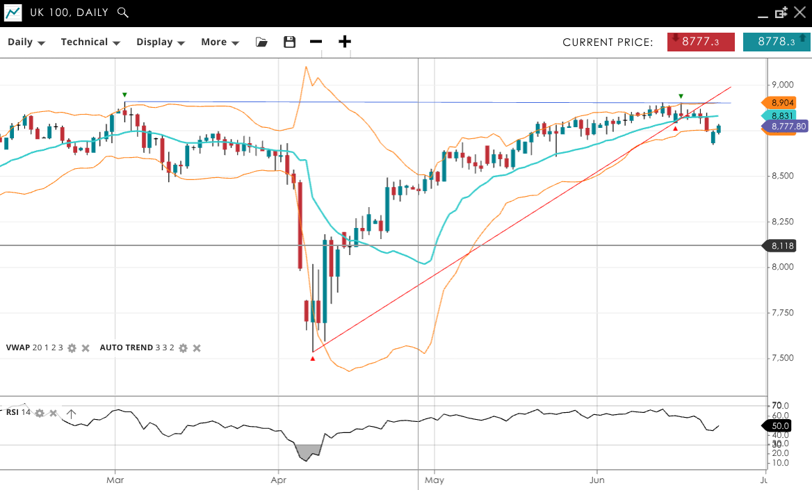 NOTE: These charts use the ‘Pro Trading Tools’ available on the SpreadEx trading platform. To use them, log in to your SpreadEx Financials Account and click ‘Technical’ from the menu on any chart.