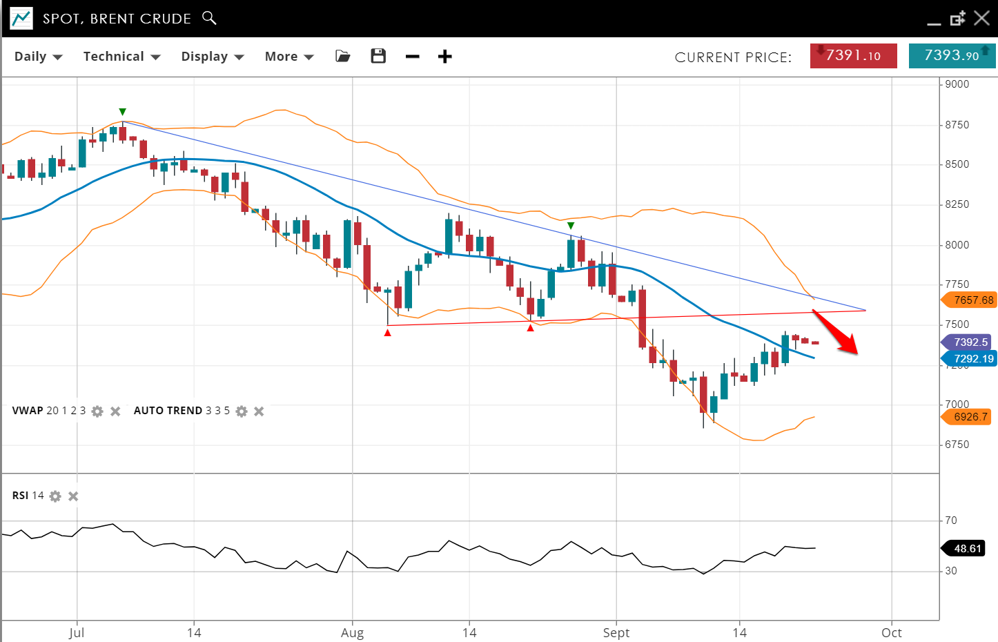 | Brent Crude | Bearish | Corrective | 73.92 | 72.92 | 69.26 | 76.57 | 48 |