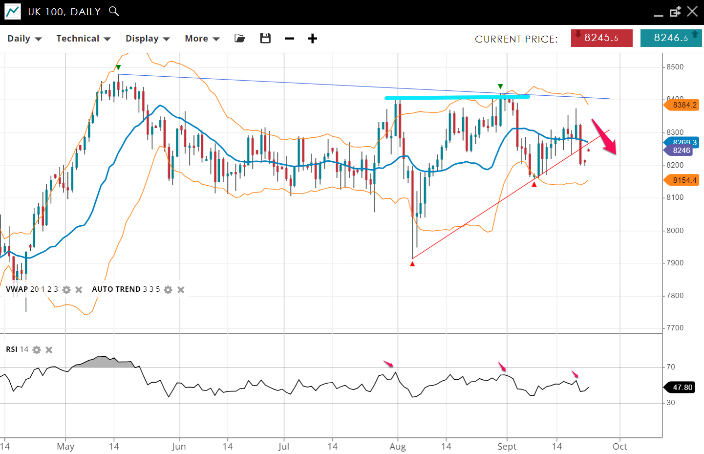 | UK 100 | Neutral | Consolidation | 8246 | 8269 | 8154 | 8384 | 47 |
