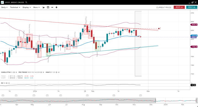 | Brent Crude | 80.60 | Neutral | Consolidation | 81.01 | 77.84 | 84.19 | 47 |