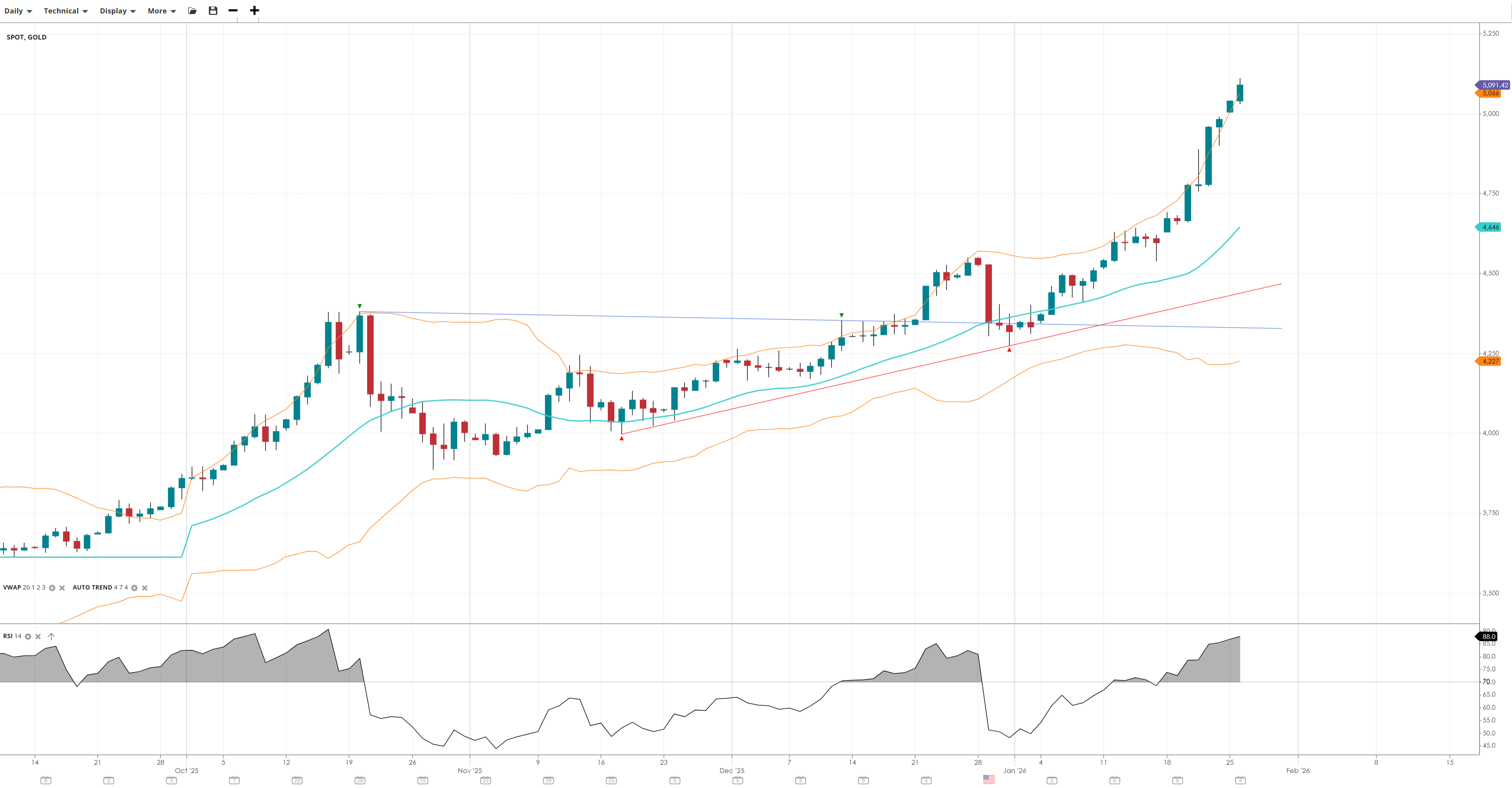NOTE: These charts use the ‘Pro Trading Tools’ available on the SpreadEx trading platform. To use them, log in to your SpreadEx Financials Account and click ‘Technical’ from the menu on any chart.