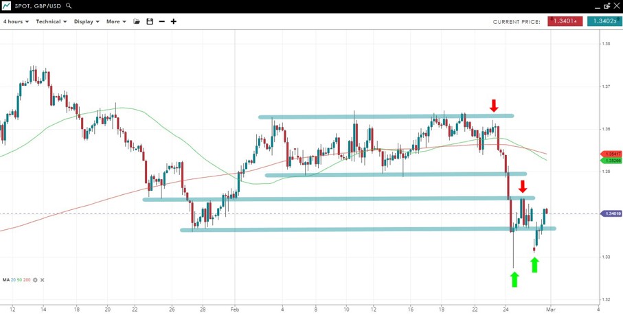Price slumped out of its trading range to under the Jan 28 but spiked higher form under 1.33