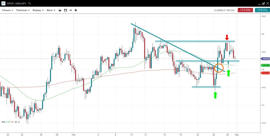 Price is attempting a break above the Feb 7 peak. It has been trending higher with the 50 SMA acting as dynamic support to any pullbacks.