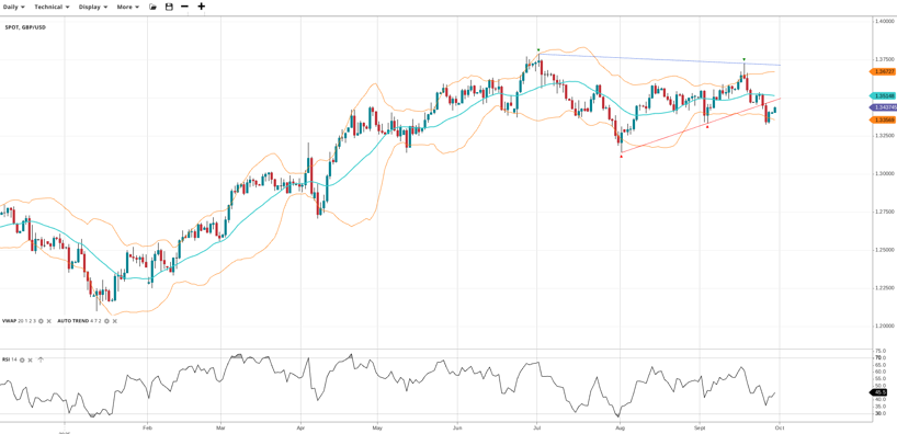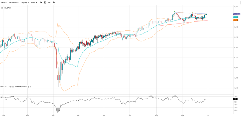 NOTE: These charts use the ‘Pro Trading Tools’ available on the SpreadEx trading platform. To use them, log in to your SpreadEx Financials Account and click ‘Technical’ from the menu on any chart.