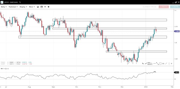 A tweezer top and bearish engulfing pattern formed over the last 2 daily candles is bearish near term. Bulls need the breakout area at 1.138 to hold, else there could be another drop under 1.13.