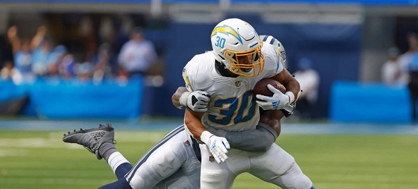 After a delay for lightning lasting 35 minutes, it was the LA Chargers who proved too much for the previously unbeaten Las Vegas Raiders, inflicting their first defeat 28-14. In a clash between the Raiders highly rated offense, and LA’s frugal defence, it was the hosts who held off a Raiders comeback to prevail. The Chargers were 21-0 up at half-time, and while Vegas got back to within one touchdown, they never got closer. Both sides now have 3-1 records.