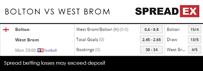 When they’re on, they’re on, with a string of 4 goal-plus victories allowing them to rack up 55 goals in 27 games. Dwight Gayle and Jay Rodriguez have bagged the brunt of them, and sit at Super Mega PGMs of 31-37 and 30-36 respectively. And even though West Brom have conceded a hardly impressive 35 times, they still have the best goal difference of +20. Yet every time they start to gain on the frontrunners – at the moment Leeds and Norwich – they stumble. For example they haven’t won a Championship fixture in 3 games, drawing to Sheffield Wednesday and Norwich while losing at Blackburn. Still, a win on Monday would keep them in the conversation, lifting them to 3 points off 2nd place and 4 points off 1st. All the way at the other end of the table, Bolton are desperate to push their way out of the relegation zone with their first Championship victory of 2019. Any hopes of a New Year boost were quickly dispelled on January 1st, the Wanderers coming away from Hull with a nasty 6-0 hangover. They then went on to lose 2-1 at Bristol, having picked up a rare win over Walsall in the FA Cup the week previous. With the worst attack in the league, and a defence that isn’t much better, the Wanderers are in for a Blue Monday. Spreadex are offering a West Brom/Bolton (h) Goal Supremacy spread of 0.6-0.8 alongside a Total Goals spread of 2.45-2.65.