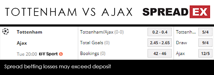 Since February 23rd Tottenham have won just 5 times in all competitions, losing 7 games and drawing once. On the road they’ve been especially ropey; their last win away from home was at Borussia Dortmund at the start of March. Before that you have to go back to January 20th’s injury time win over a now-relegated Fulham. That puts a lot of pressure on Mauricio Pochettino and co. to get the job done on Tuesday night; something made all the more difficult by Ajax’s big game swagger outside Amsterdam. On paper, the Dutch side – who, level on points with PSV, are facing an end of season run-in domestically even more nail-biting than the situation between Man City and Liverpool – should have been out of the competition a long time ago. Yet they survived a group including Bayern Munich, drawing against the Germans twice; overcame a 2-1 loss at home to Real Madrid in style, hammering the defending champions 4-1 at the Bernabau; and denied Cristiano Ronaldo another Champions League success by beating Juventus 2-1 in Turin. This all from a side that entered the competition in the 2nd round of qualifying! Crucially, Ajax also have Dusan Tadic at their disposal. The Serbian international has 34 goals this season, and goes into the semi-final 1st leg at a Super Mega PGM of 25-30. Spurs, meanwhile, are without the injured Harry Kane and the suspended Son Heung-Min, leaving Fernando Llorente as their best bet at 23-28. Considering their recent form, the hosts really need to hammer home their advantage on Tuesday, with Spreadex offering a Tottenham/Ajax Goal Supremacy spread of 0.2-0.4, alongside a Total Goals spread of 2.45-2.65.